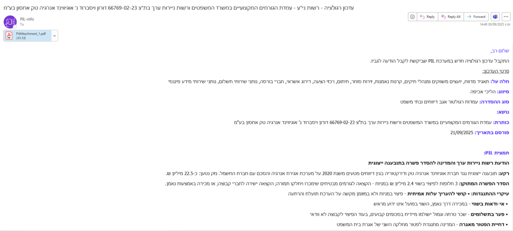 ואוספת בשבילכם כל שינוי רגולציה הרלוונטי לכם, מעלה אותו למערכת PIL